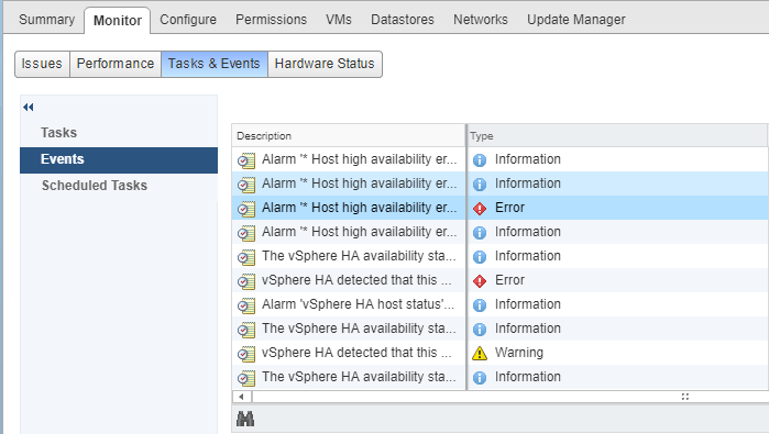 When I look into the vCenter logs, found that “vSphere HA detected that host” with an yellow colour warning also found red colour error “vSphere HA has detected the network isolation of a host”.