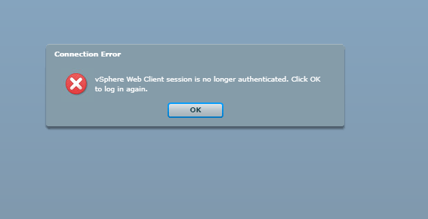 I’ve faced a new issue today with the vSphere Web Client version 6.5 u3. I’ve been logged into the vCenter server since last two hours. When I’m trying to search a VM, the search result was failed and popped up this error “vSphere Web Client session is no longer authenticated. Click OK to log in again“.