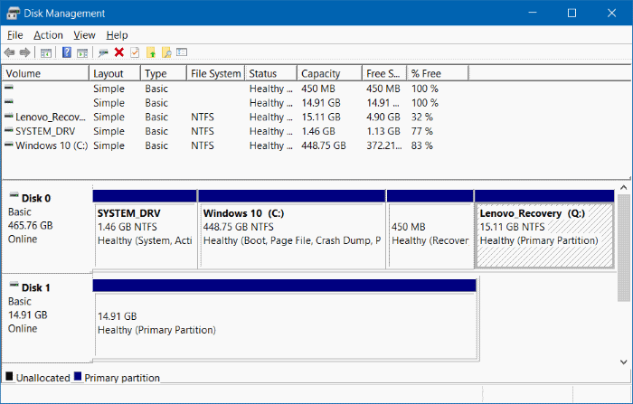 - There you will find ‘Recovery Partition’ with a drive letter (Note: this drive can be found under Disk 0)