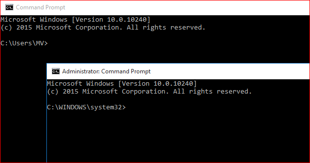 Here is the screen shot to see the difference between when you type Command Prompt and Run As Admin Command Prompt